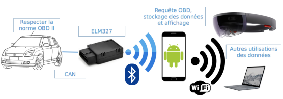 Dans le cadre de ma quatrième année à l'ESIR, j'ai souhaité réaliser mon stage à la plateforme MobBi et à l'université de Rennes 1. Le but de ma mission était de faire communiquer l'ELM327 ou OBD (on-board diagnostic) qui est un appareil de diagnostic automobile disposant d'un module Bluetooth avec un casque HoloLens.