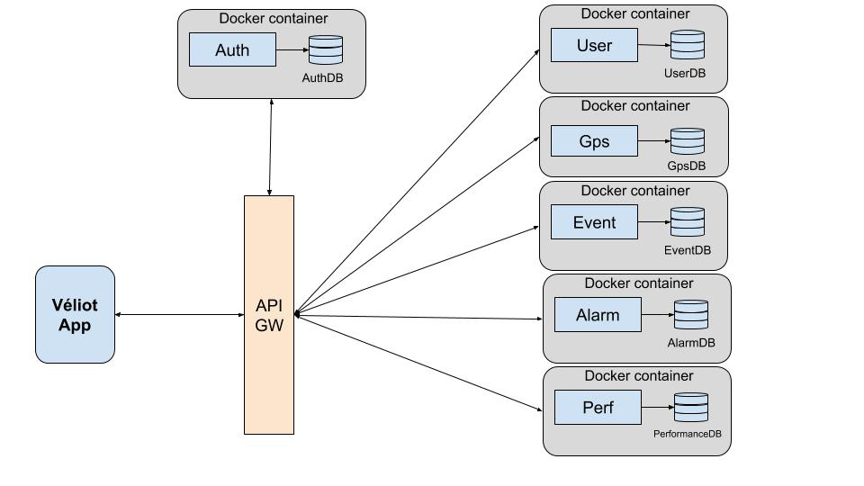 - Pour la partie serveur, nous avons réalisé une API gateway avec plusieurs microservices derrière réalisés en NodeJS avec chacun sa base de données.